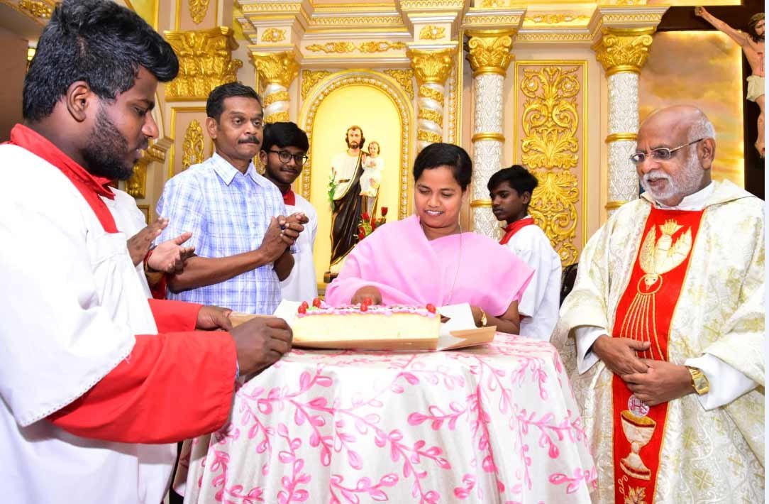 Sr. Ophilia, a member of the Little Flower convent in the parish, has completed her final profession and returned to the community. A felicitation function was organized on this occasion. The parish community prayed for the success of her ministry and wished her on this occasion